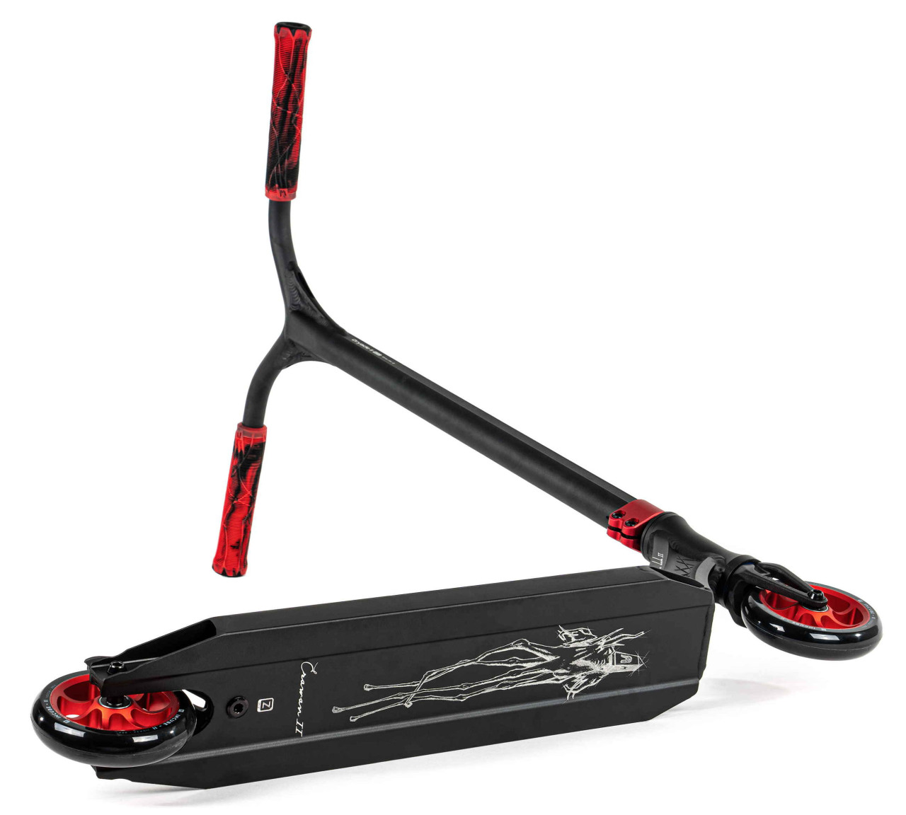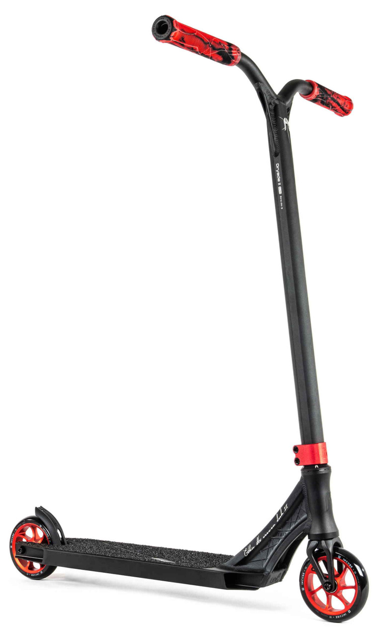 Версия самоката, также как и одноименная дека, имеет индекс V2. По сравнению с первой версией самоката, обновленная модель увеличилась в размерах, и стала при этом легче. Все компоненты самоката выполнены из алюминия 6061 Т6, включая руль, который имеет необычный фрезерованный профиль для облегчения веса. Колеса имеют спицевый тип диска, диаметром 110 x 24 мм, а дека оборудована тормозом. Самокат в размере S отлично подойдет для райдеров ростом от 140 до 150 сантиметров, и от 150 до 170 сантиметров в размере M.