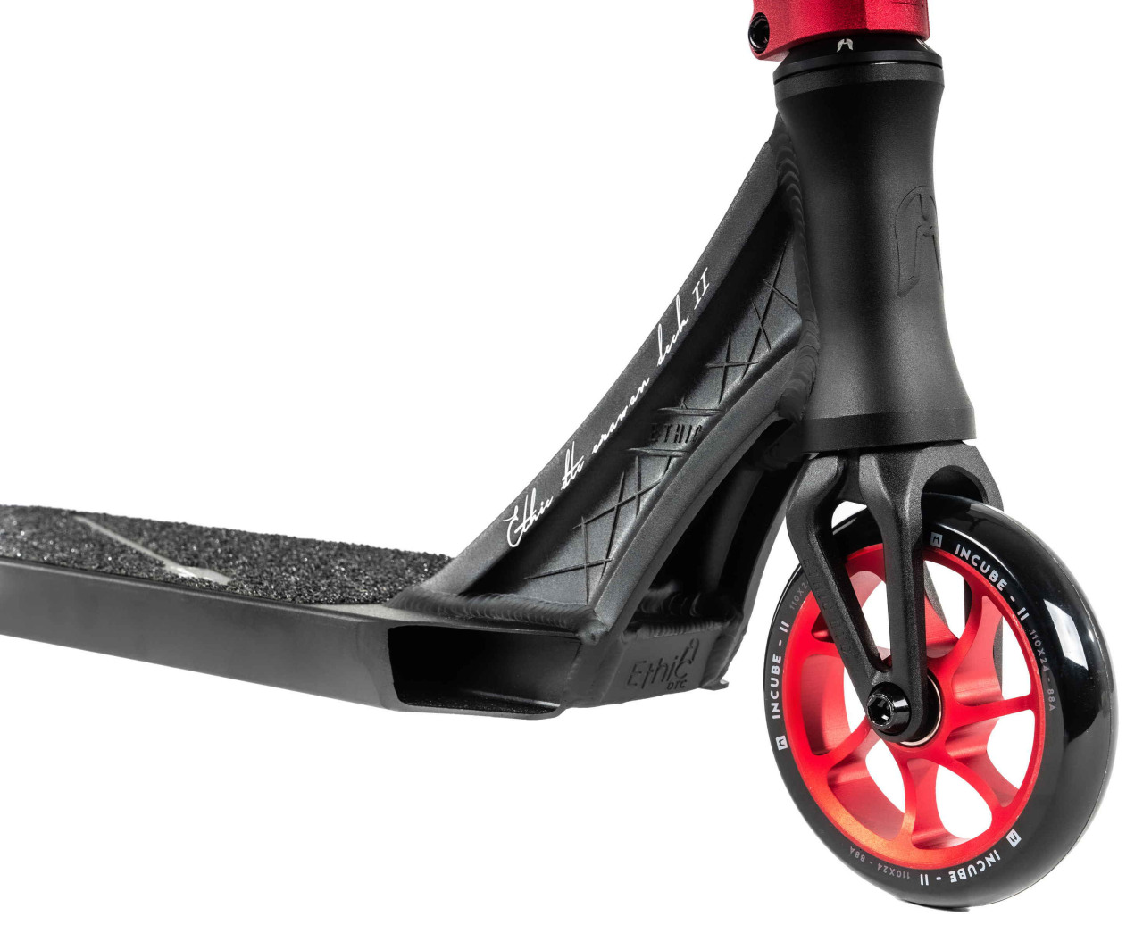 Ethic Erawan V2 – профессиональный парковый самокат, воплощающий в себе последние инновации в мире экстремального катания. Разработанный совместно с профессиональным райдером Кевином Россом. Этот аппарат создан для тех, кто стремится к совершенству в трюках и комфорте катания.
