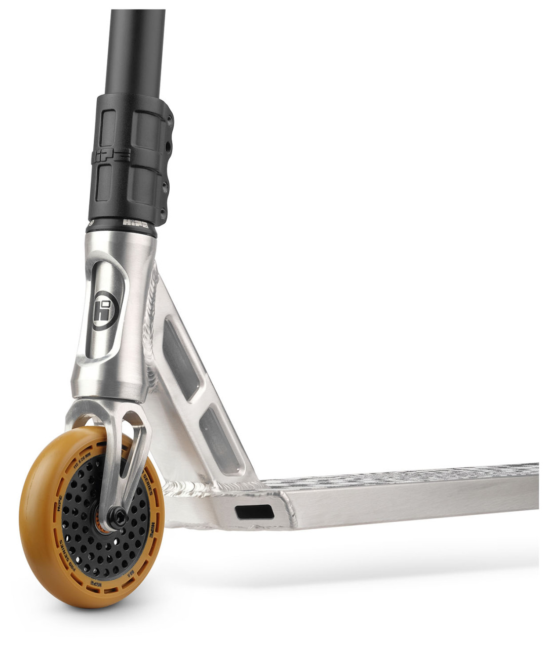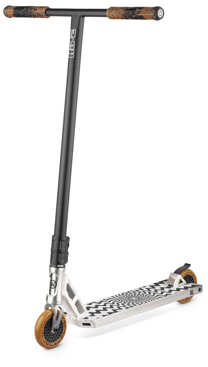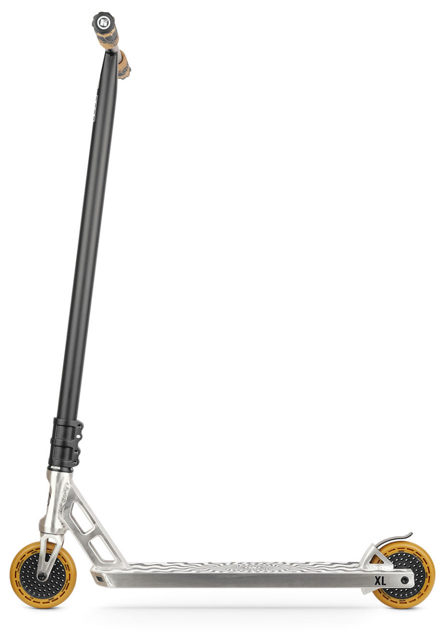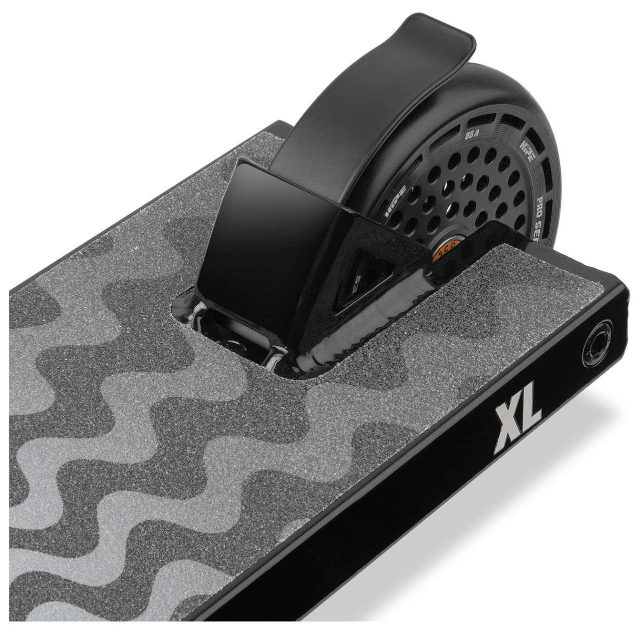 Hipe XL (2025) — трюковой самокат для катания в дисциплине стрит для райдеров полупрофессионального уровня. Дека самоката имеет трапецевидный профиль со стороны "шеи",что снижает нагрузку на рулевой стакан, и квадратные дропауты с отверстием под шестигранный ключ диаметром 6 мм. На обратной стороне деки имеются рельсы, служащие дополнительным ребром жесткости. Также, в заднюю часть деки интегрирован алюминиевый фендер, являющийся единым элементом деки, служащий для того, чтобы не позволять заднему колесу тормозить случайным образом во время приземления трюков. Тормоз также предусмотрен, установлен непосредственно внутрь фендера, при необходимости его можно снять.